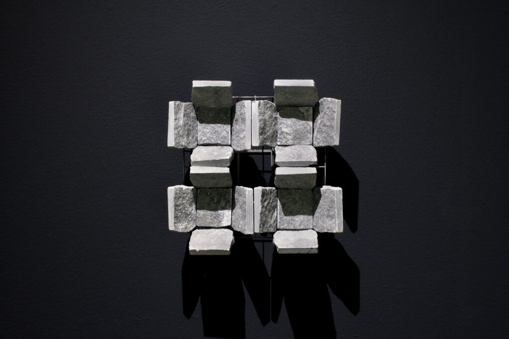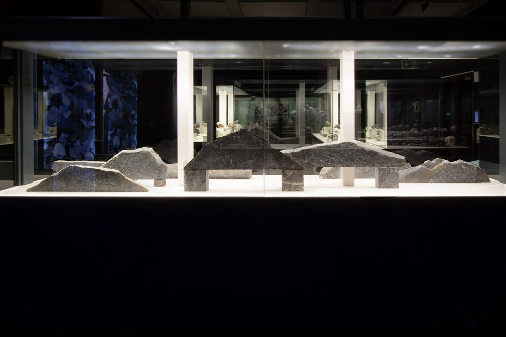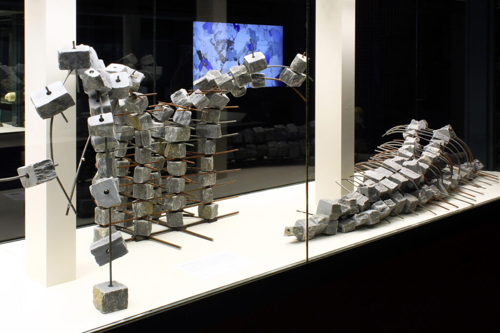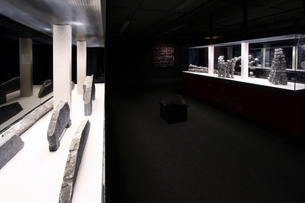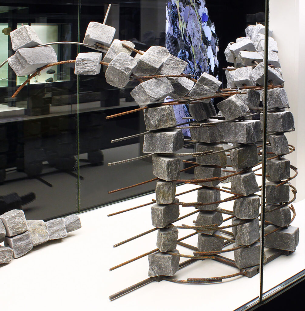 In seiner reinsten Form führt die Analyse des Gneis in den Bereich des feinstofflichen Aufbaus. Im Gesteinsdünnschliff, der mit dem Polarisationsmikroskop untersucht wird, lassen sich ungeahnte Welten schwereloser Schönheit entdecken, die sonst für das Auge verborgen sind. Axel Feuss, der die Einführung zur Ausstellungspublikation geschrieben hat, fasst zusammen: „Präzise bildhauerische Arbeit kontrastiert zur Rauheit des Materials, konkrete geometrische Form zur Bewegtheit des räumlichen Konzepts. Das ist kein Widerspruch in sich, sondern Mehrschichtigkeit der an der Natur und am künstlerischen Können erprobten Erfahrung.“
